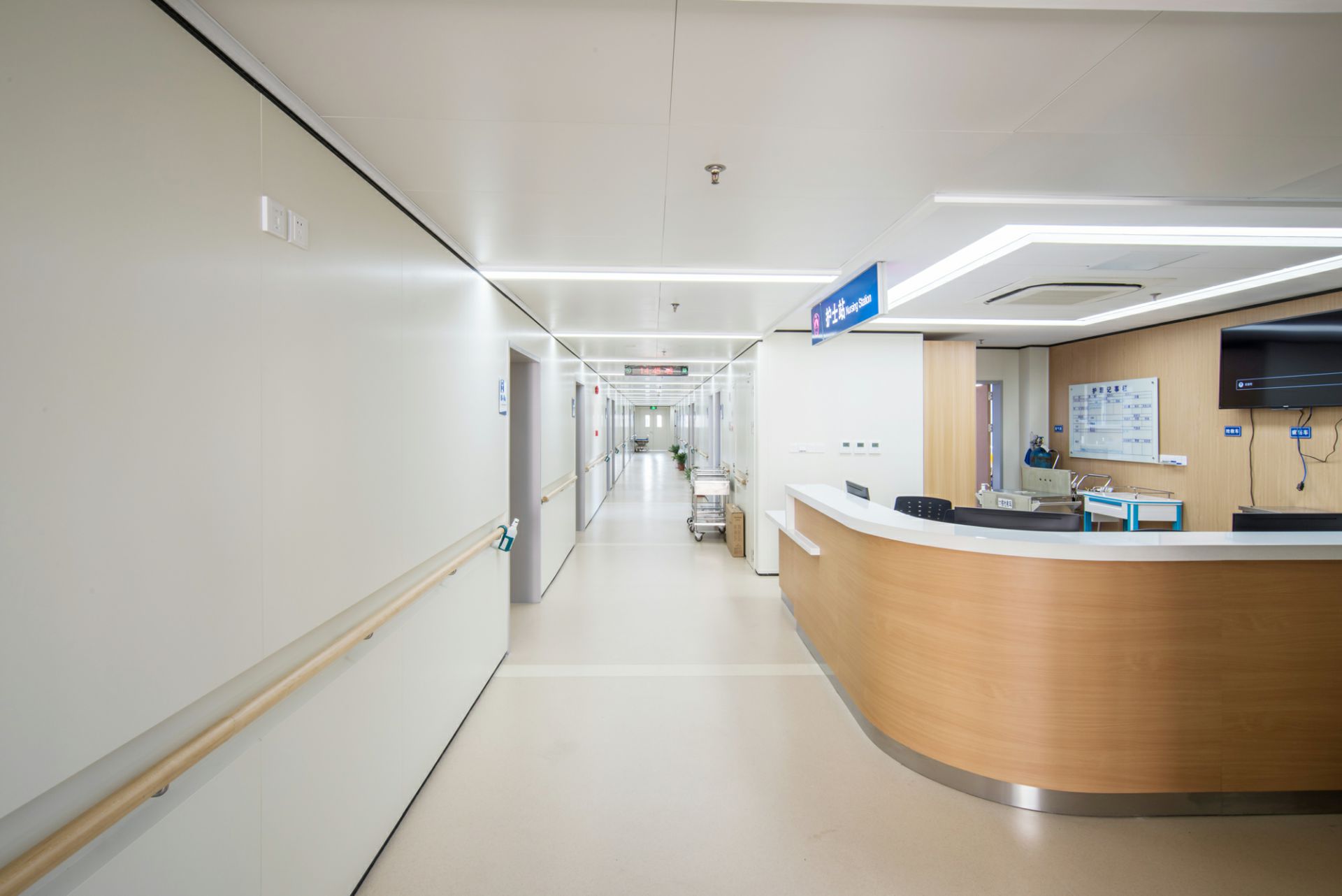 苏州魏泉进口商品贸易有限公司为东南医院旧楼改造中提供医疗用门整体解决方案,其中包含甲级双开防火门、金属木纹墙板、金属木纹门、手动移门、金属吊顶等。打造高品质人性化的医疗空间。
