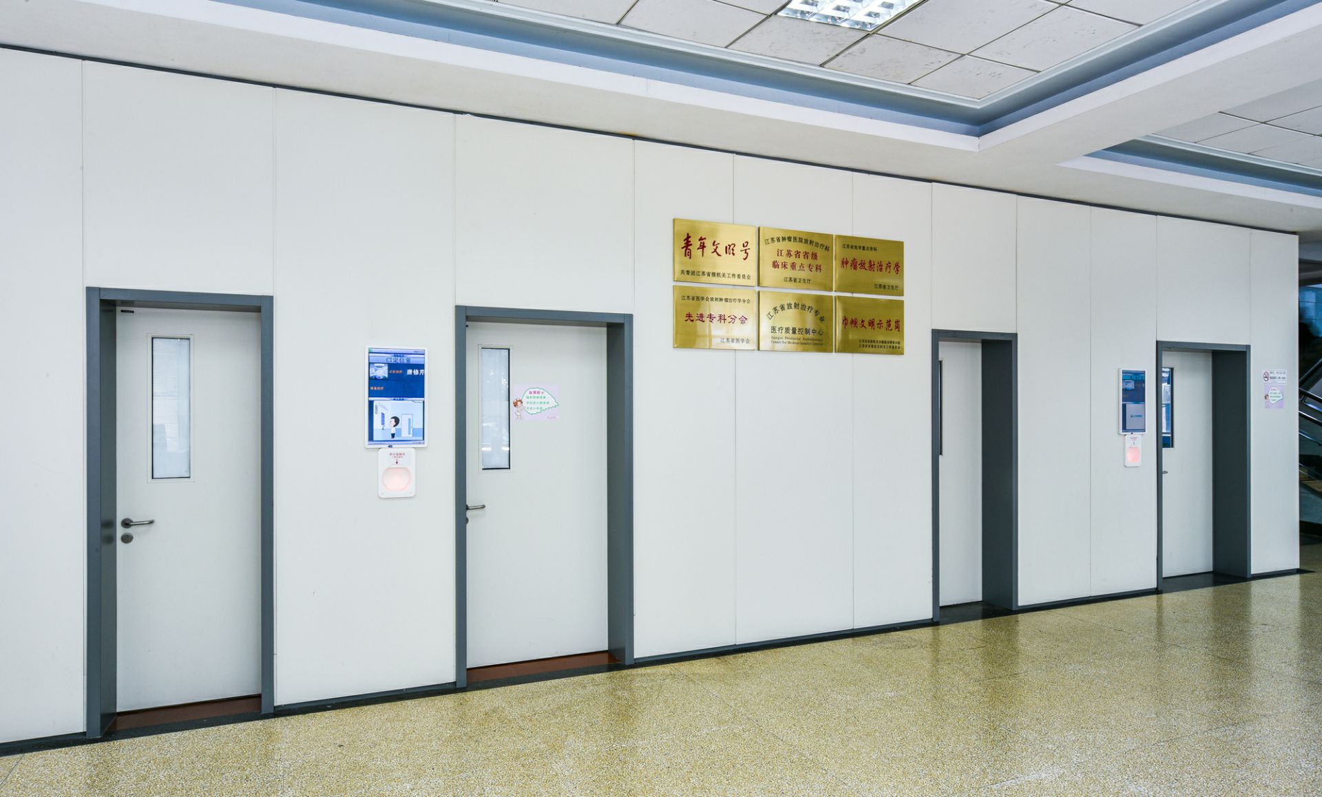 苏州魏泉进口商品贸易有限公司为江苏省肿瘤医院项目改造中提供医疗环境整体解决方案,其中包含金属门、金属隔断、金属墙板、金属吊顶等。打造高品质人性化的医疗空间。